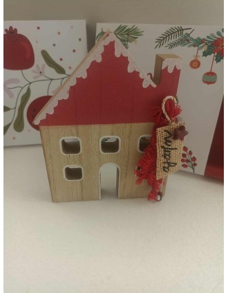 Επιτραπέζιο ξύλινο σπίτι. Συνοδεύετε με χριστουγεννιάτικη συσκευασία.