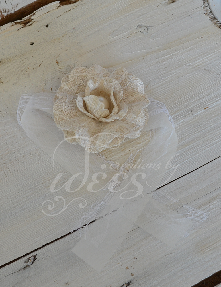 Λουλούδι υφασμάτινο εκρού με δαντέλα για της φίλες της νύφης.