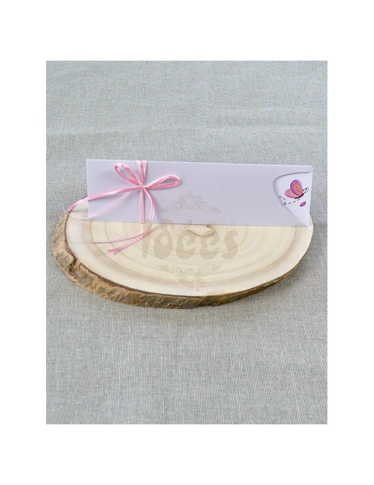 Προσκλητήριο βάπτισης κασετίνα με κάρτα σε μέταλ λευκή με λιλά φάκελο.