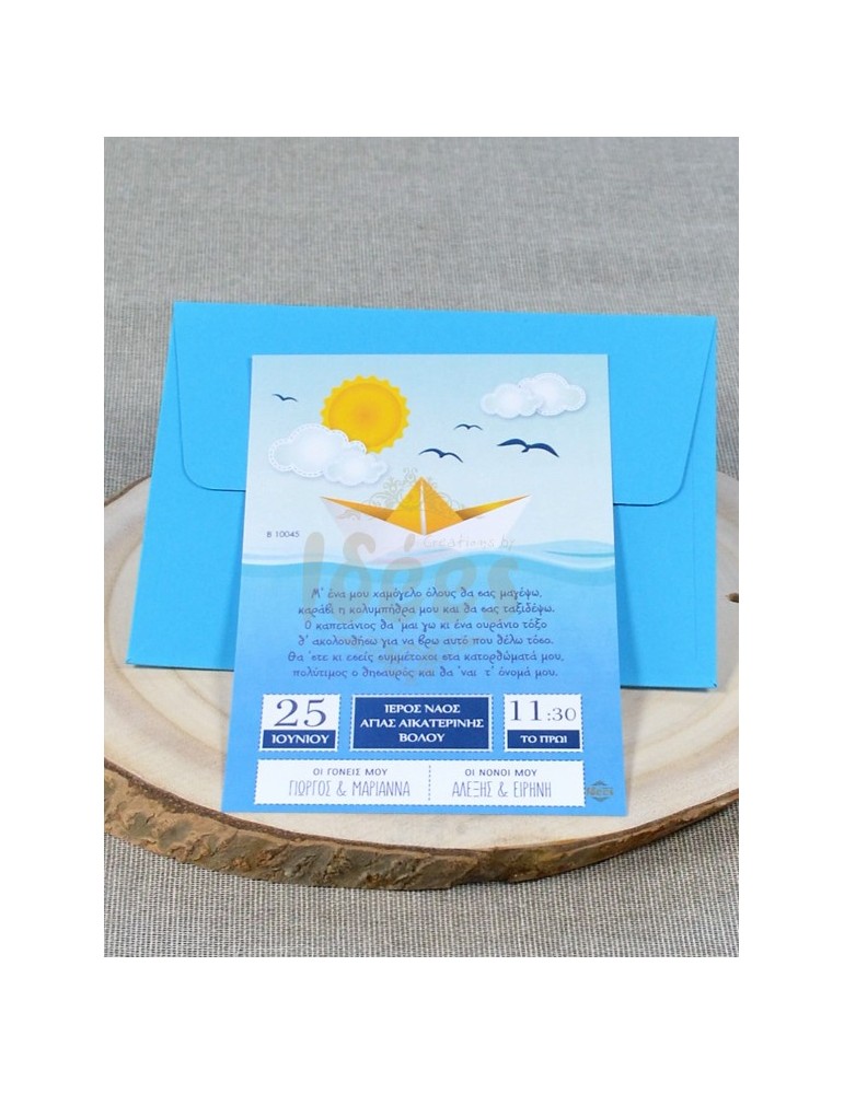 Με ιδιαίτερη χαρά σας προσκαλούμε να συμμετάσχετε με ευλάβεια στο μυστήριο της βάπτισης του γιου/της κόρης μας…