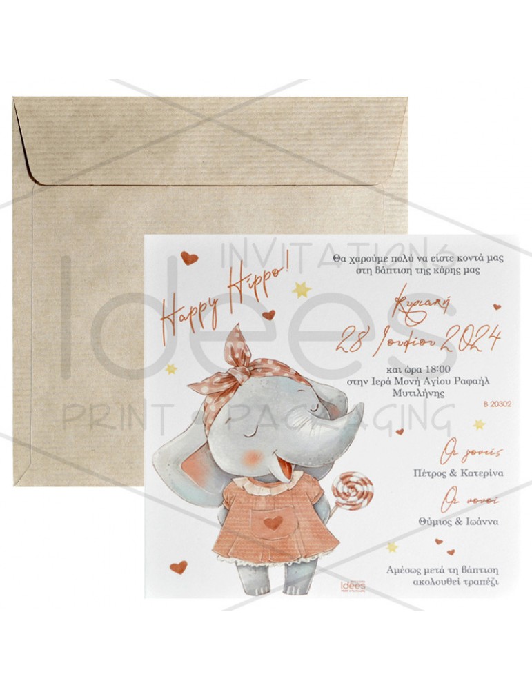 Πρόσκληση βάπτισης με την ελεφαντίνα.