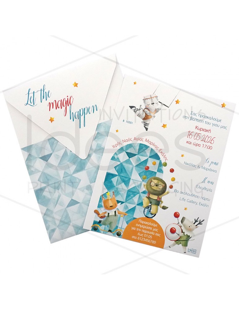 Με ιδιαίτερη χαρά σας προσκαλούμε να συμμετάσχετε με ευλάβεια στο μυστήριο της βάπτισης του γιου/της κόρης μας…