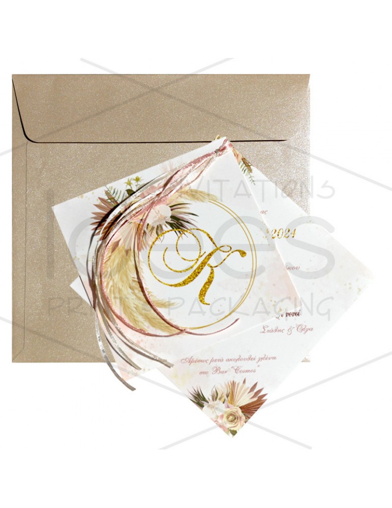 Πρόσκληση βάπτισης με boho λουλούδια.