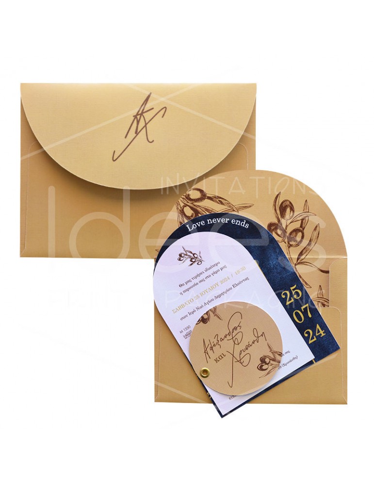 Προσκλητήριο γάμου με τριπλή κάρτα σε τρία χρώματα.