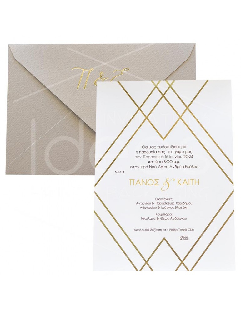 Προσκλητήριο γάμου με χρυσοτυπία στην κάρτα.