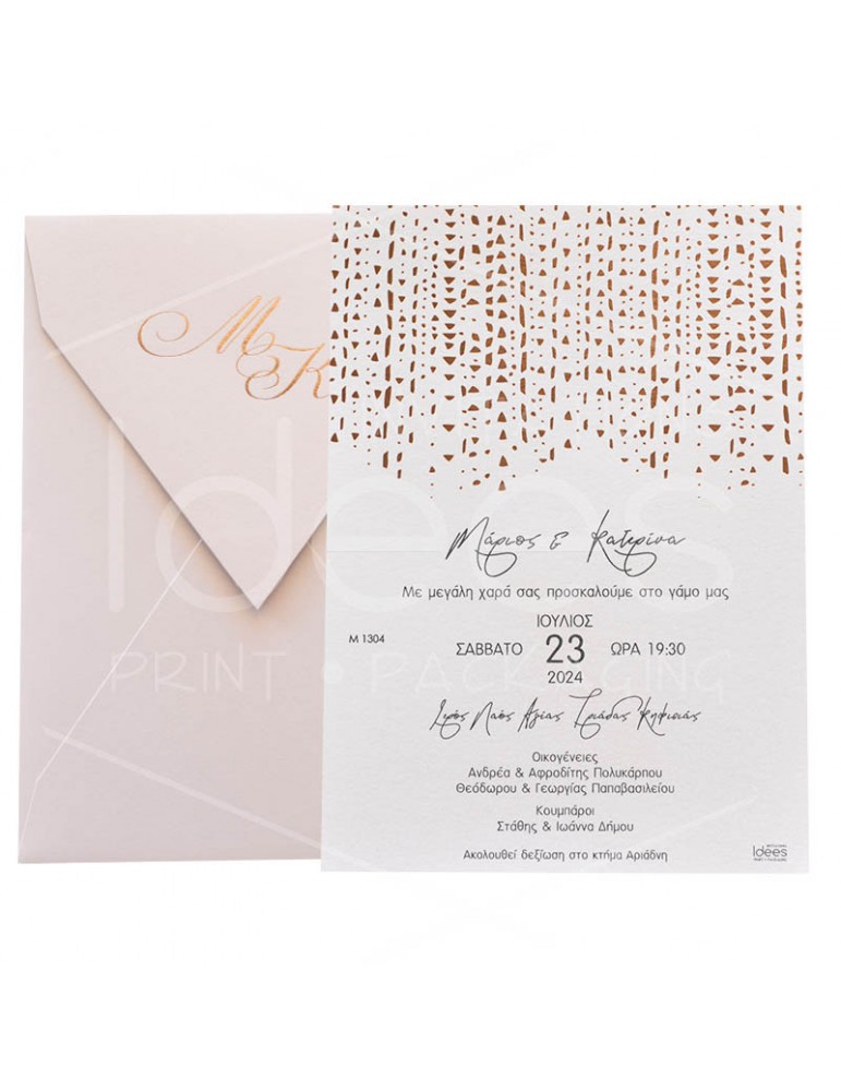 Προσκλητήριο γάμου με χρυσή βροχή στην κάρτα.