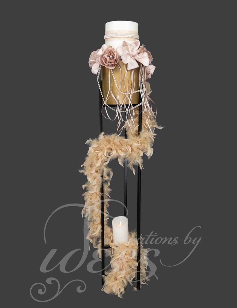 Λαμπάδα γάμου μεταλλική με λουλούδια.