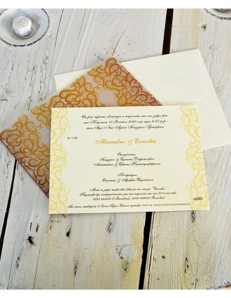 Μοντέρνο προσκλητήριο γάμου. Διαστάσεις: Κάρτα 14 Χ 19 εκ. σε Crush Corn ματ χαρτί στα 250 γρ. Φάκελος 15 Χ 20 εκ. σε Craft χαρτί στα 300 γρ.Εκτύπωση κάρτας δείγματος: Απλή, τετραχρωμία