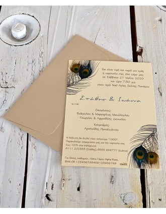 Μοντέρνο προσκλητήριο γάμου συρταρωτό. Διαστάσεις: Κάρτα 15,5 Χ 17,5 εκ. σε Sand (άμμου) μεταλλικό χαρτί στα 250 γρ. Φάκελος 16 Χ 18εκ. σε εκρού μεταλλικό ειδικό χαρτί Bukalin στα 340 γρ. με κοπτικό πλαίσιο. Εκτύπωση κάρτας δείγματος: Απλή, χρώμα καφέ (buffalo).