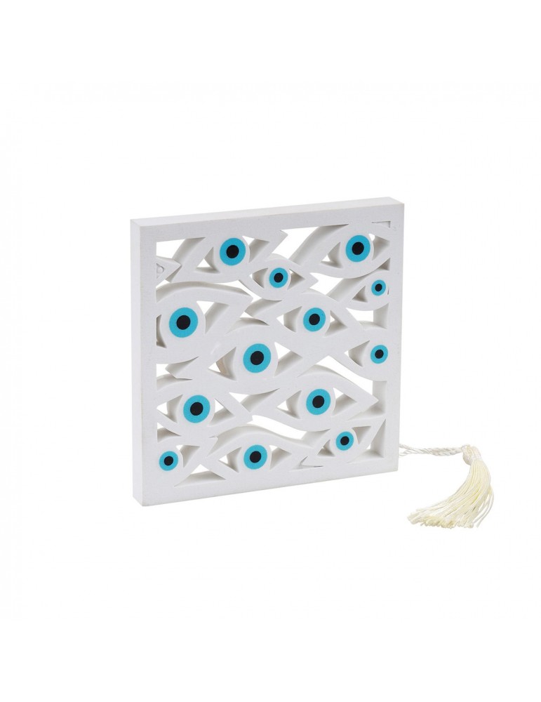 Διακοσμητικό Καδράκι με Μοτίβα Ματιών σε Λευκό και Γαλάζιο