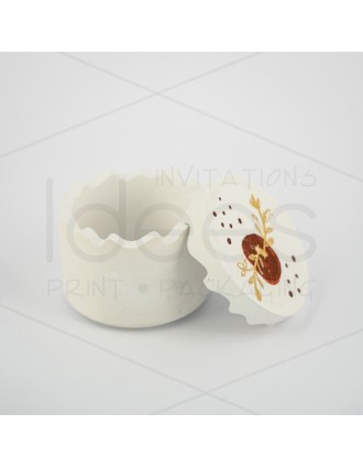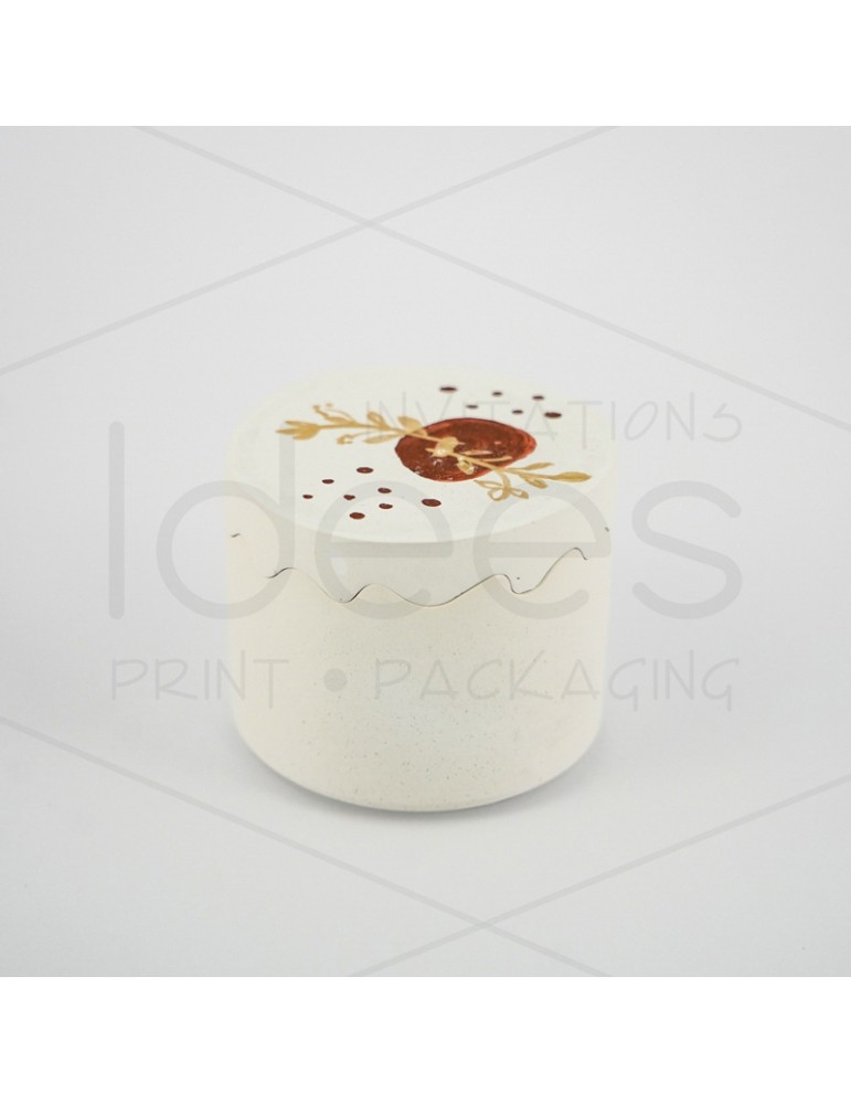 Μπομπονιέρα γάμου κεραμική στρογγυλή με δοντάκια, ζωγραφισμένη στο χέρι.