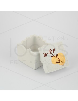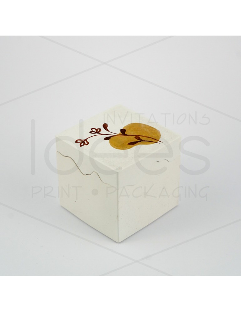 Τετράγωνη μπιζουτιέρα με δοντάκια για μπομπονιέρα γάμου, ζωγραφισμένη στο χέρι.
