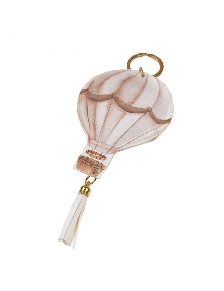 Mπομπονιέρα βάπτισης μπρελόκ δερμάτινο αερόστατο τυπωμένο με γήινες αποχρώσεις.