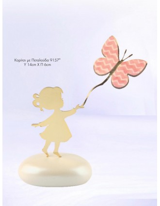 Μπομπονιέρα κορίτσι με ροζ πεταλούδα.