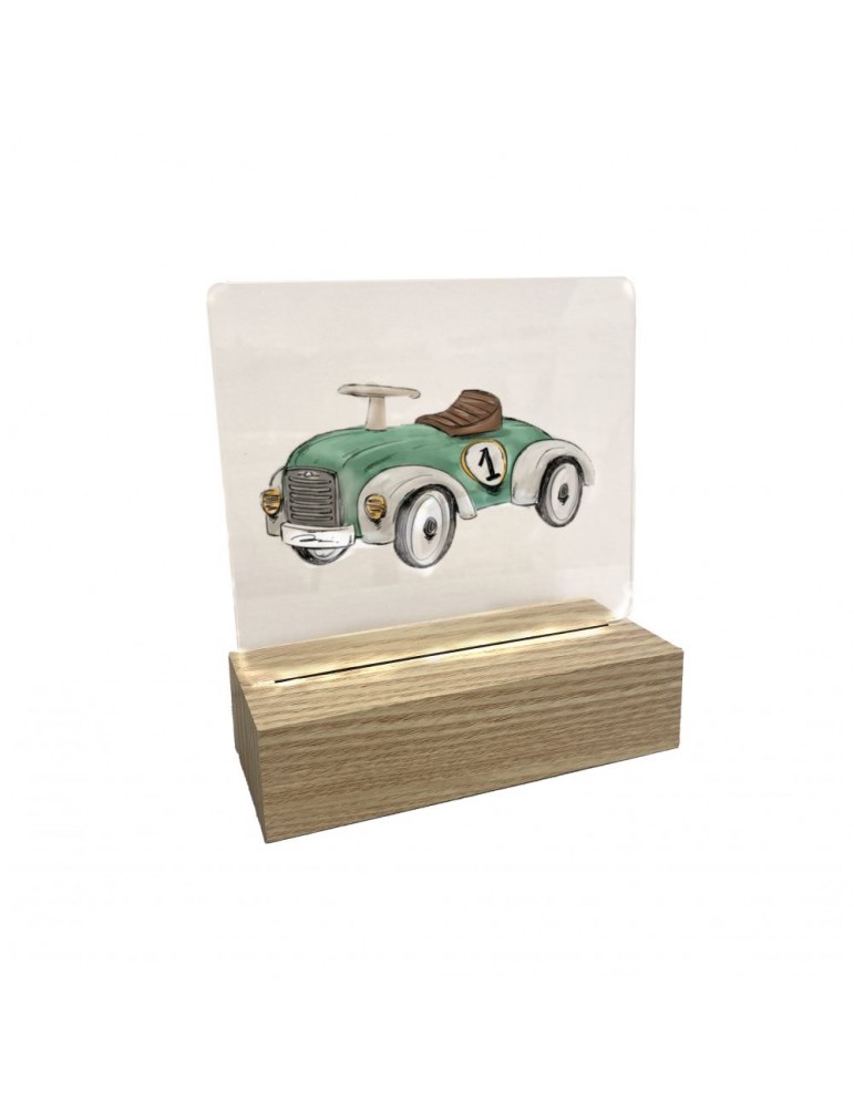 Φωτιζόμενο καδράκι με ξύλινη βάση με vintage θέμα το αυτοκίνητο.
