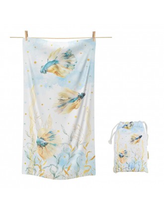 Υπέροχη πετσέτα θαλάσσης με σχέδιο aqua blue, περιλαμβάνει πουγκάκι αποθήκευσης.