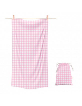 Υπέροχη πετσέτα θαλάσσης με σχέδιο ροζ καρό, περιλαμβάνει πουγκάκι αποθήκευσης.