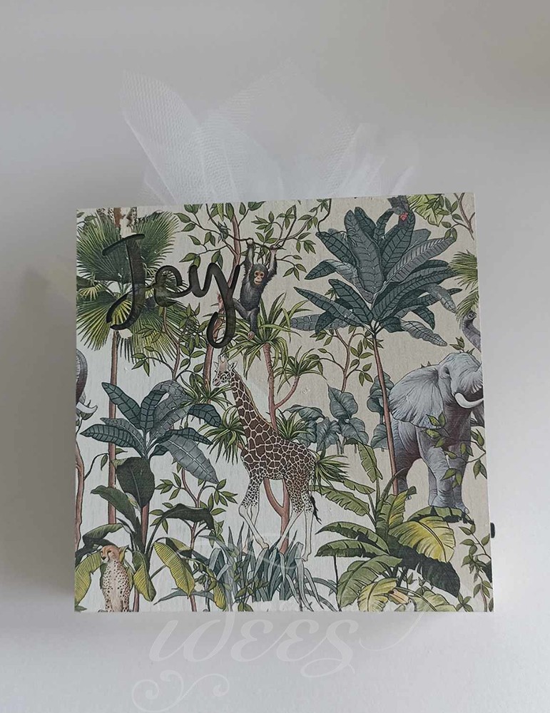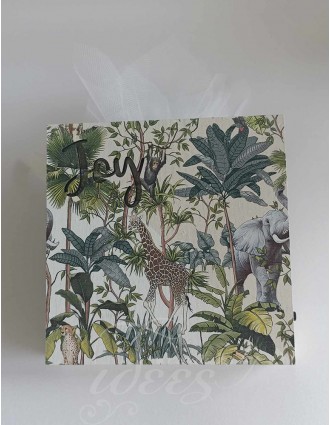 Μπομπονιέρα ξύλινο φωτιζόμενο καρδάκι με θέμα ζούγκλα.