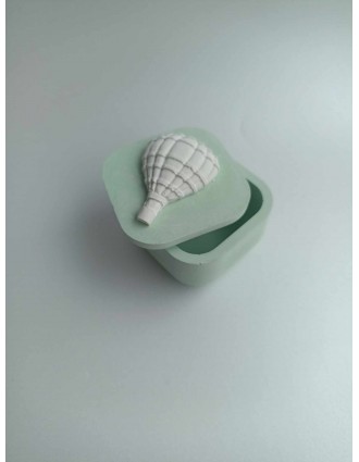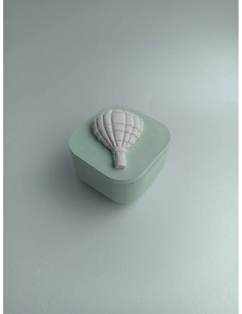 Mπομπονιέρα κεραμική σε βεραμάν απόχρωση με λευκό αερόστατο στο καπάκι.