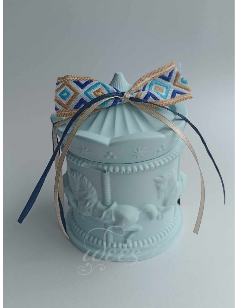 Μπομπονιέρα σιελ μπιζουτιέρα με καρουζέλ γύρω γύρω.