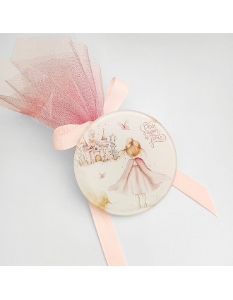 Το σουβέρ έχει θέμα την πριγκίπισσα αλλά μπορεί να προσαρμοστεί το δικό σας θέμα της βάπτισης.