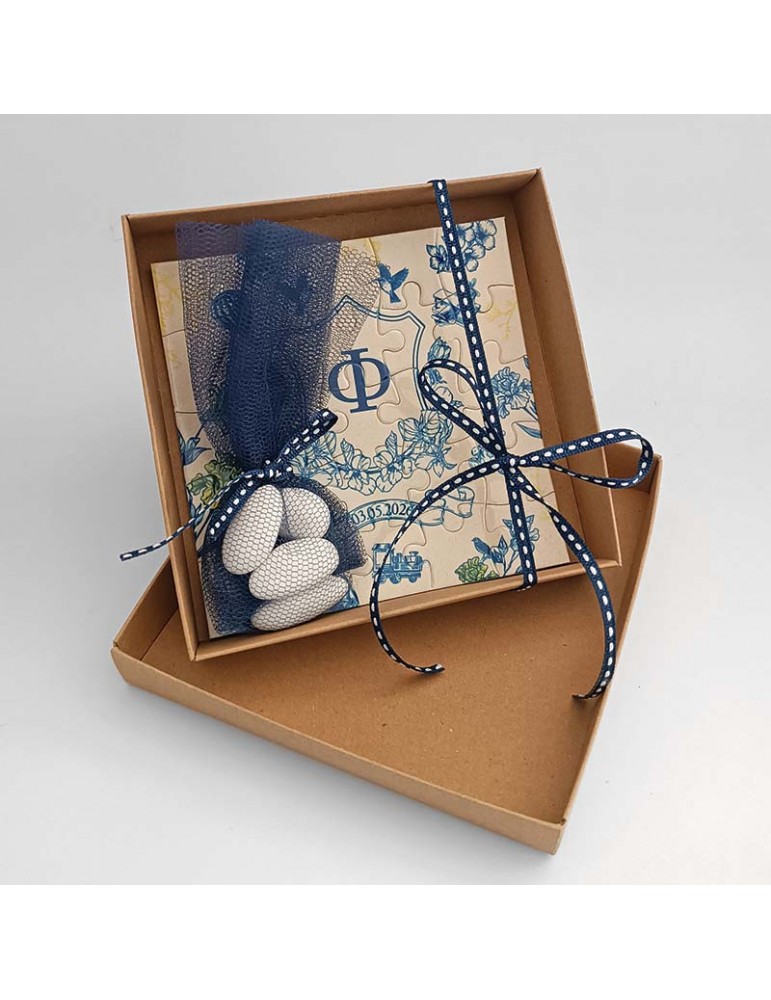 Μπομπονιέρα βάπτισης θεματικό παζλ 25 τμχ με κουτάκι.