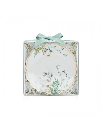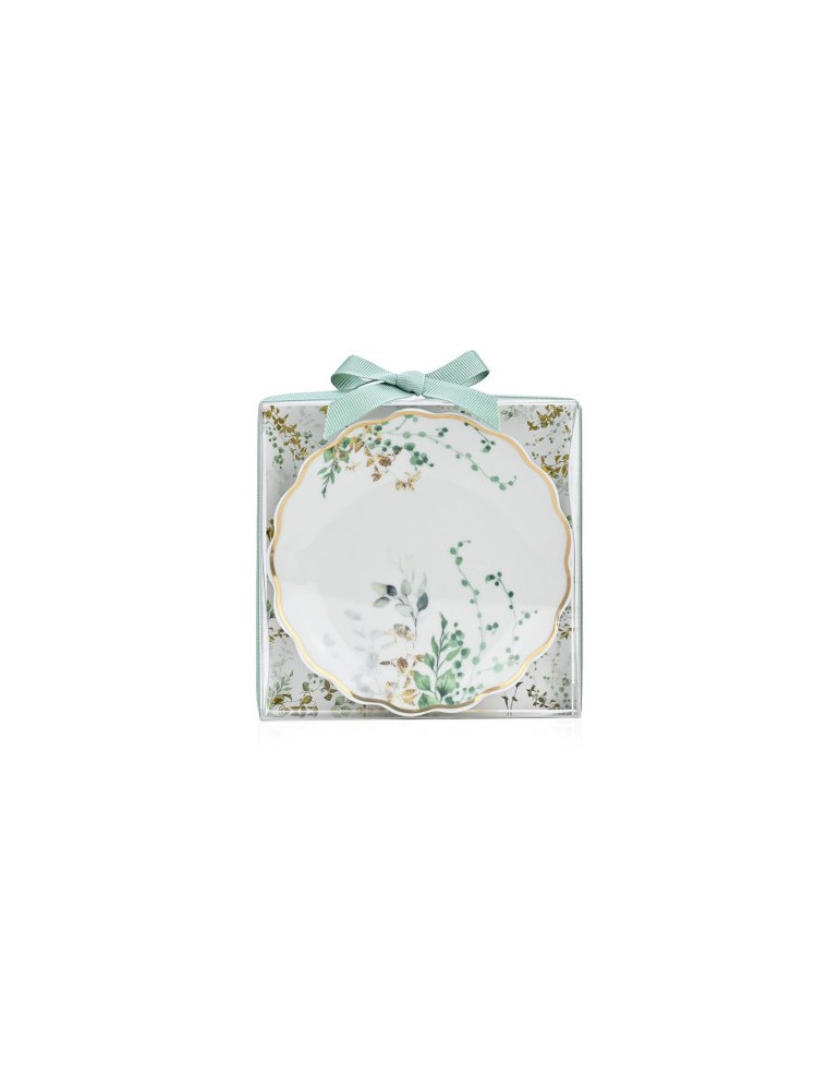Πορσελάνινο πιατάκι κοσμημάτων με χρυσό τελείωμα, που αποπνέει κομψότητα.