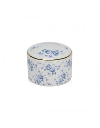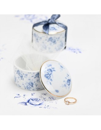 Πορσελάνινη μπιζουτιέρα με διαχρονικό σχέδιο μπλε τριαντάφυλλα, που αποπνέουν ρομαντισμό και φινέτσα.