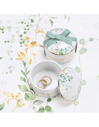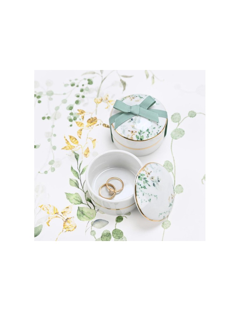 Πορσελάνινη μπιζουτιέρα με botanical σχέδιο σε αποχρώσεις του πράσινου, που φέρνει τη φρεσκάδα της φύσης σε κάθε χώρο.