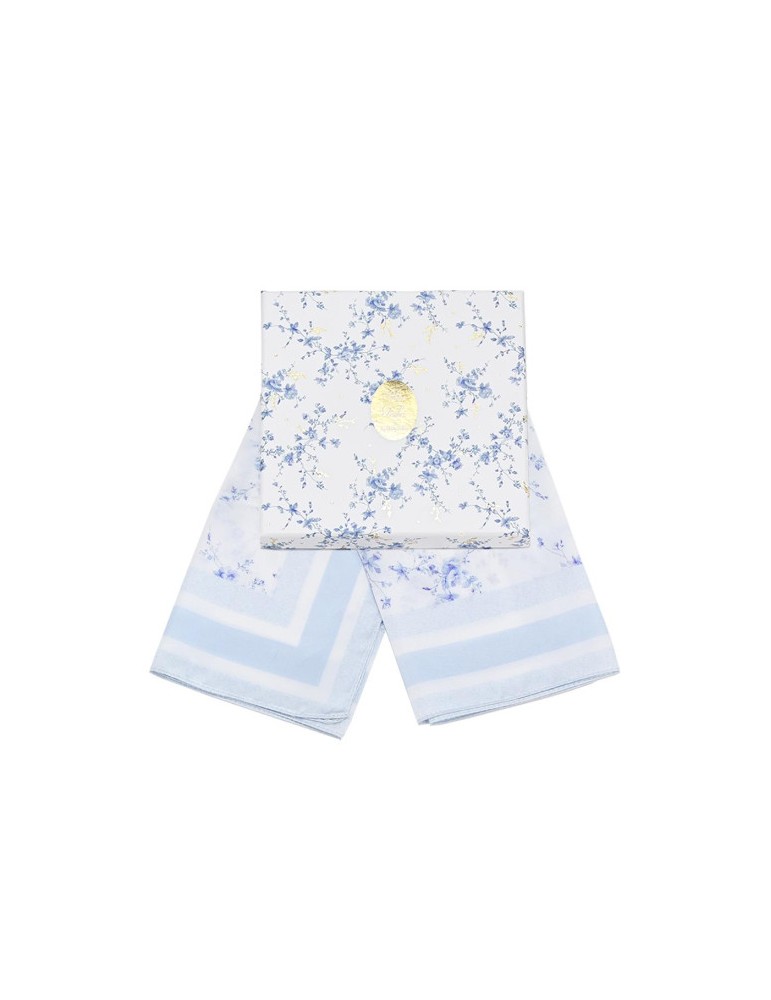 Το μαντίλι της σειράς Blue Toile, με ρομαντικό σχέδιο σε αποχρώσεις του μπλε και διάσταση 50x50cm,