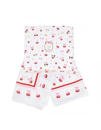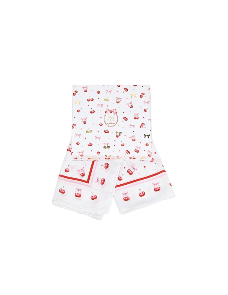 Το μαντίλι της σειράς Cherry Bloom, με παιχνιδιάρικο σχέδιο κερασιών και διάσταση 50x50cm, αποπνέει φρεσκάδα και στυλ.