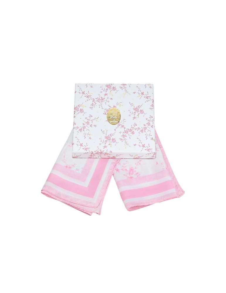 Το μαντίλι της σειράς Pink Toile, με ρομαντικό σχέδιο σε απαλές ροζ αποχρώσεις και διάσταση 50x50cm, αποπνέει διακριτική πολυτέλεια και στυλ.