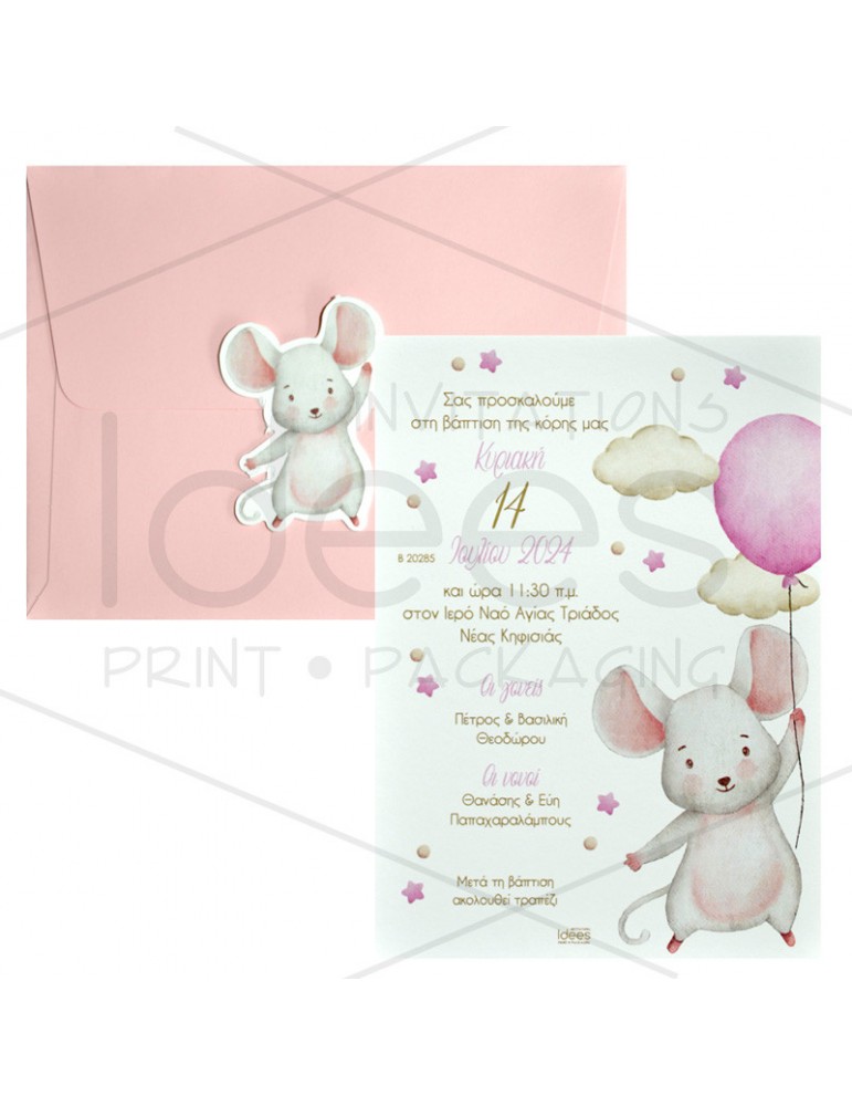 Προσκλητήριο βάπτισης ποντικάκι.