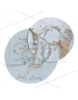 Προσκλητήριο βάπτισης με αρκουδίνα. Η αρκουδίνα είναι τυπωμένη και μέσα στον φάκελο. Κάρτα 14 Χ 19 εκ. σε χαρτί Tella Constellation 280 gr. Φάκελος 14,5 Χ 19,5 τυπωμένος εσωτερικά σε χαρτί Tella Constellation 280 gr.
