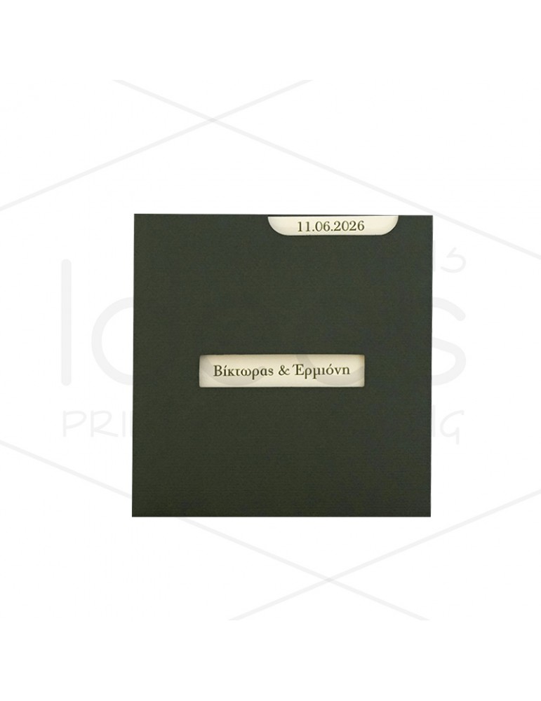 Προσκλητήριο γάμου πράσινη κασετίνα με κοπτικό παράθυρο.