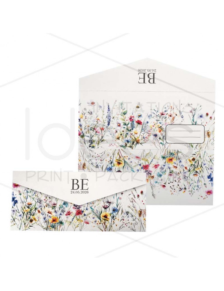 Προσκλητήριο γάμου τρίπτυχο με λουλούδια, υπάρχει δυνατότητα να διακοσμηθεί με βουλοκέρι.