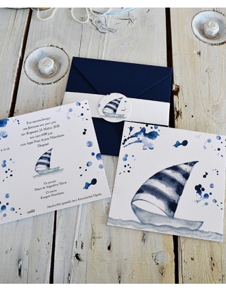 Προσκλητήριο βάπτισης. Kάρτα σε BiancoFlash Premium χαρτί στα 300 γρ. Φάκελος σε Burano Blue χαρτί στα 120 γρ. Διαστάσεις: Κάρτα 16*16 εκ. Φάκελος 17*17 εκ. Η τιμή του προσκλητηρίου αναφέρεται χωρίς εκτύπωση. Για να επιλέξετε το είδος της εκτύπωσης πατήστε. ΕΔΩ