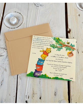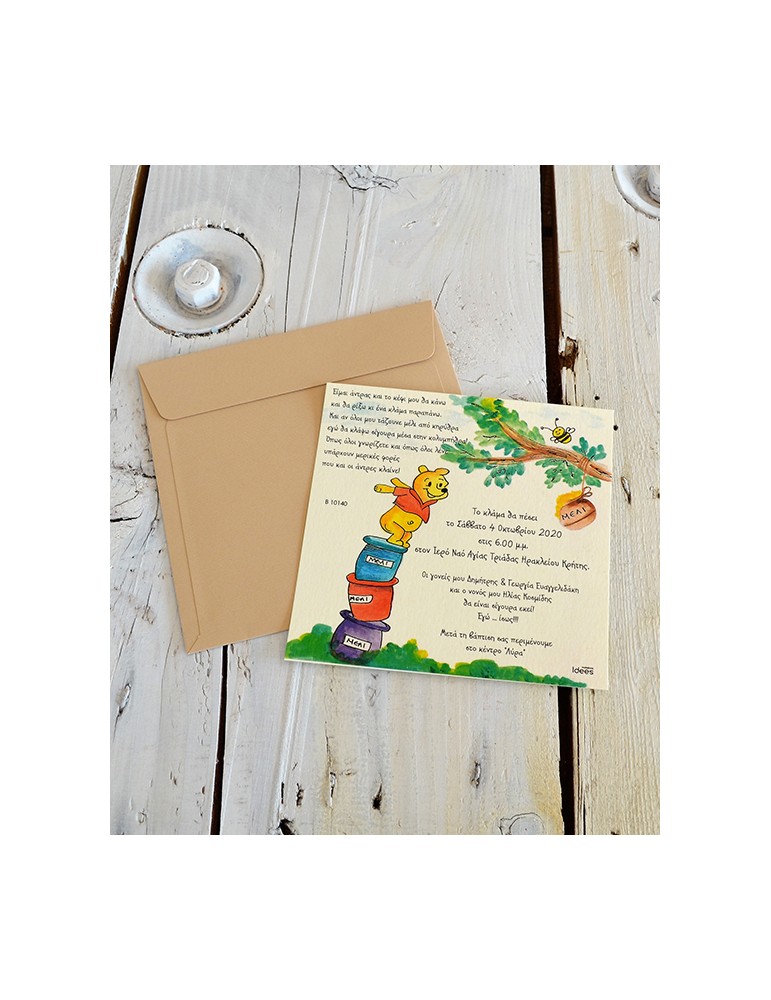 Προσκλητήριο βάπτισης. Kάρτα σε Crush Corn χαρτί στα 250 γρ. Φάκελος σε Craft χαρτί στα 300 γρ. Διαστάσεις: Κάρτα 15*15.8 εκ. Φάκελος 15.5*16 εκ. Η τιμή του προσκλητηρίου αναφέρεται χωρίς εκτύπωση. Για να επιλέξετε το είδος της εκτύπωσης πατήστε. ΕΔΩ