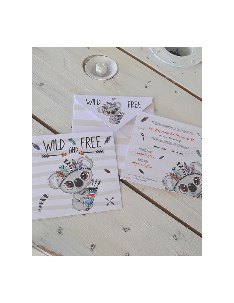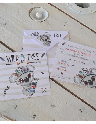 Προσκλητήριο βάπτισης αρκούδος με μπαλόνι. Κάρτα 14 Χ 19 εκ. σε χαρτί Old Mill Premium στα 300 γρ. Φάκελος 15 Χ 20 εκ. σε χαρτί Woodstock Nocce στα 285 γρ.