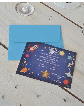 Προσκλητήριο βάπτισης ταξίδι. Κάρτα 14 Χ 19 εκ. σε χαρτί Old Mill Premium στα 300 γρ. Φάκελος 14,5 Χ 19,5 σε χαρτί Oltre Mare στα 215 γρ