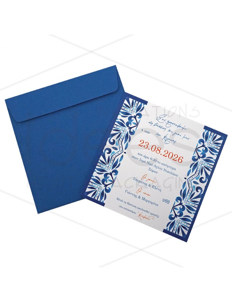 Προσκλητήριο βάπτισης σε μπλε αποχρώσεις και με μεσογειακό μοτίβο.