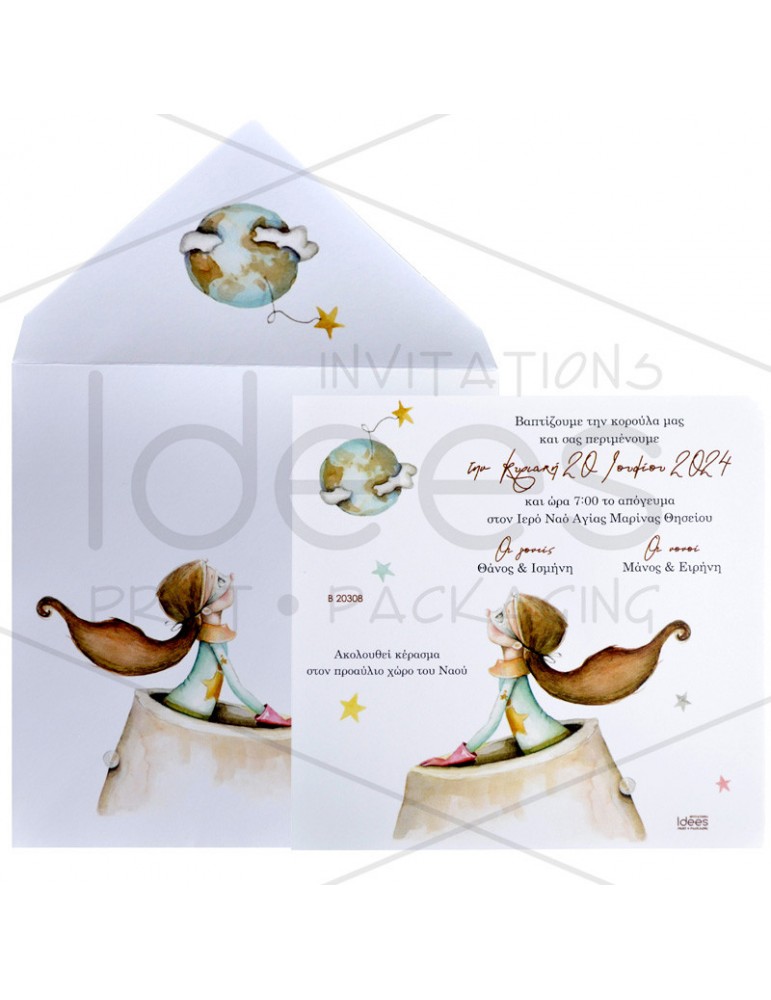Προσκλητήριο βάπτισης με το διάστημα.