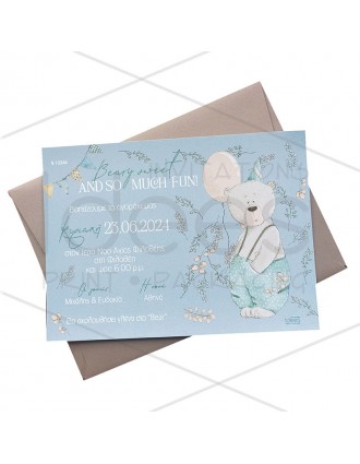 Προσκλητήριο βάπτισης αρκούδος με μπαλόνι.