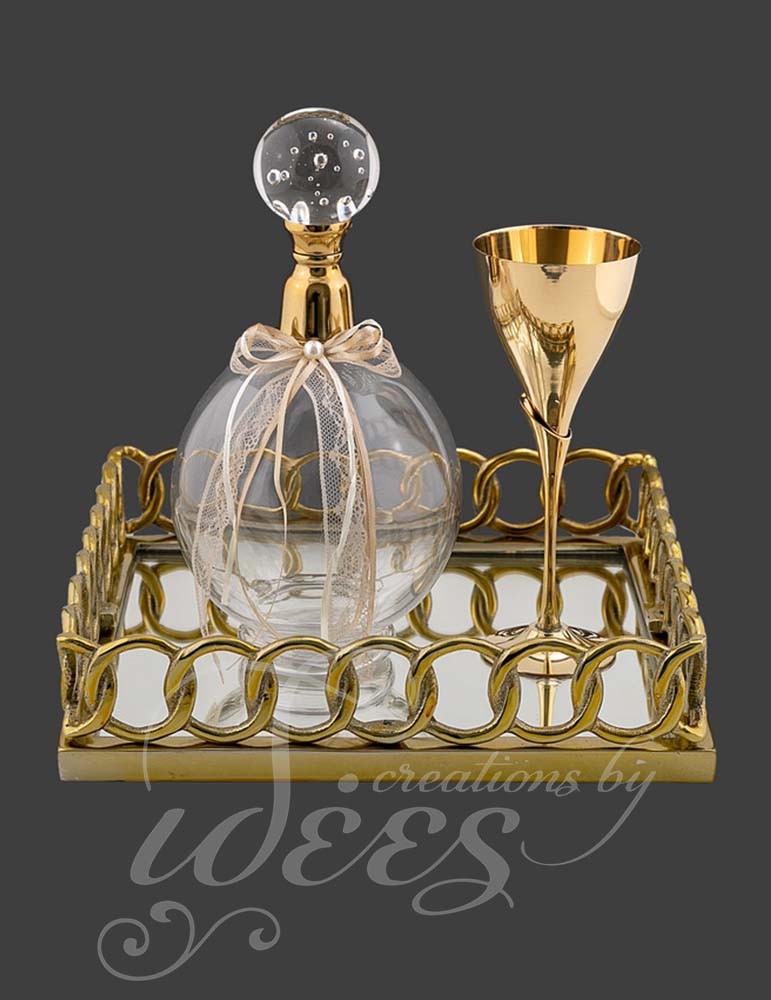 Περιλαμβάνει επίχρυσο δίσκο καθρέπτη, κανάτα με επίχρυσες λεπτομέρειες και ποτήρι χρυσό.