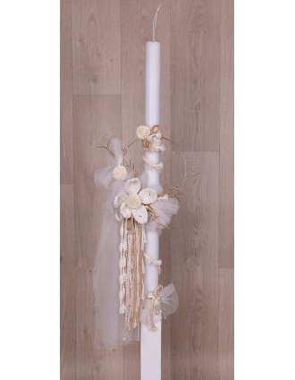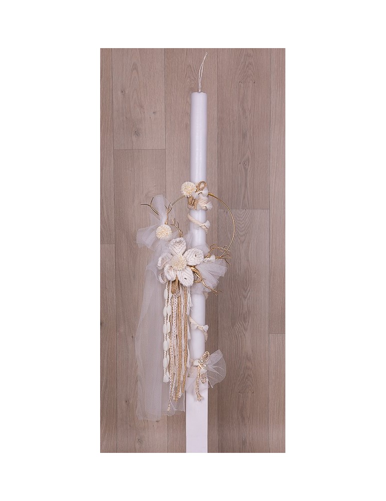 Λαμπάδα βάπτισης με λουλούδια πλεκτά μακραμέ χειροποίητα.