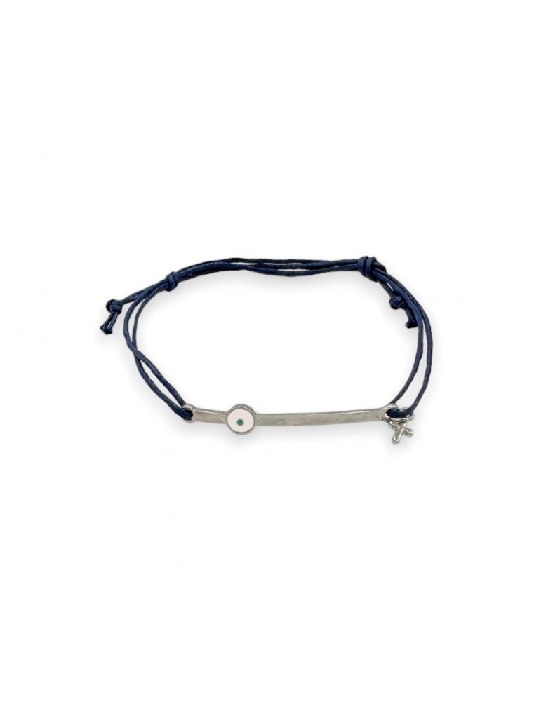 Μαρτυρικό με μπλε κορδόνι και ασημί μπάρα με ματάκι και αταυρό.