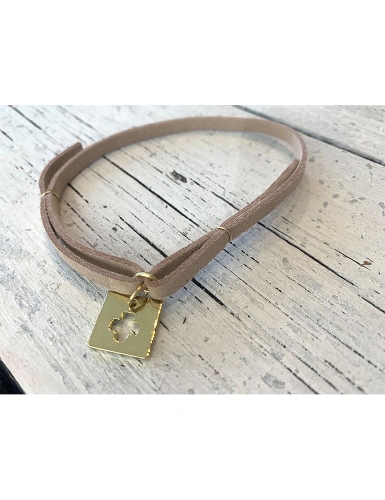 Μαρτυρικό βραχιολάκι σουέτ με χρυσό τετράγωνο διάτρητο σταυρό.