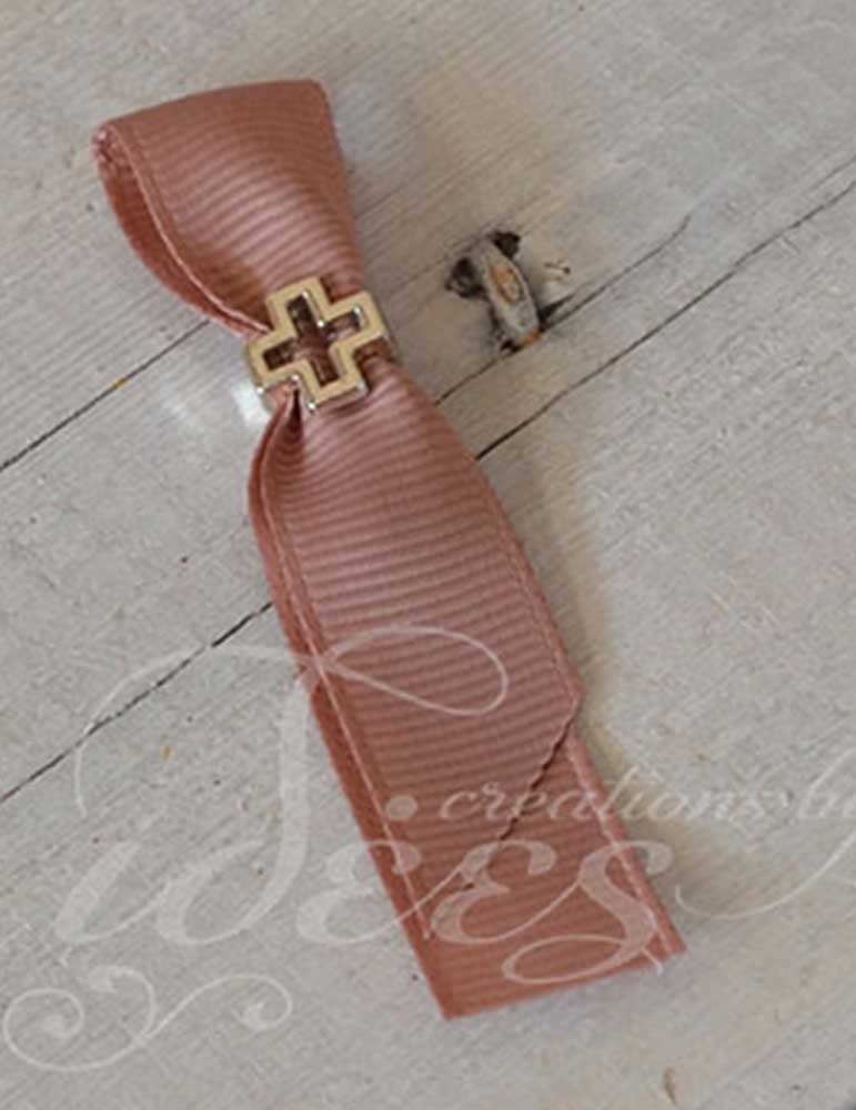 Μαρτυρικό με επάργυρο πλακέ σταυρό και γκρο κορδέλα σε απόχρωση του σάπιου μήλου.
