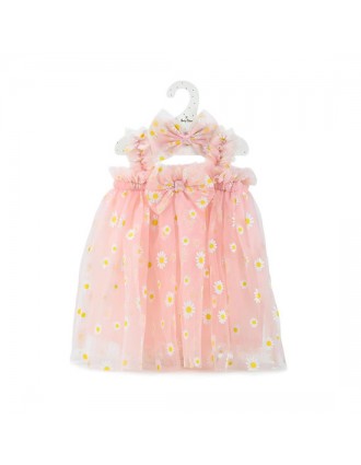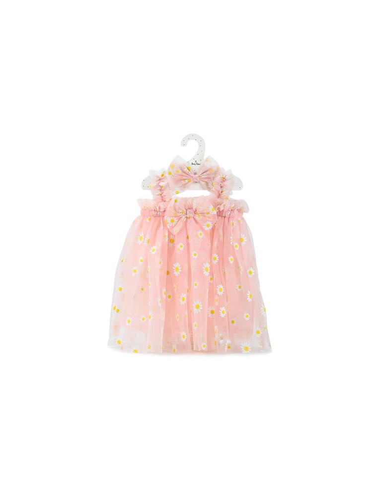 Σε απαλό ροδακινί χρώμα, με τούλι διακοσμημένο με λευκές μαργαρίτες και φιόγκους, χαρίζει στο μικρό σας αγγελούδι ένα παραμυθένιο στυλ.