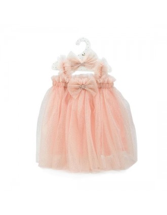 Σε απαλό ροζ χρώμα, με τούλι διακοσμημένο με λαμπερό glitter και φιόγκους, προσφέρει ένα εντυπωσιακό και παραμυθένιο look που θα ξεχωρίσει σε κάθε περίσταση.